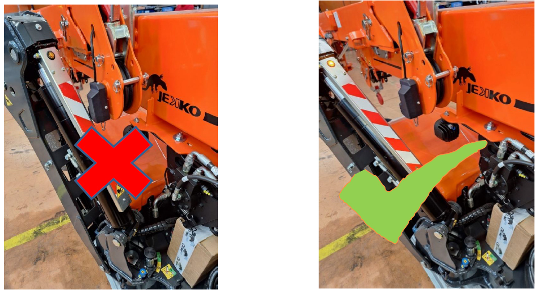 With the old version of the SW, when the outrigger 1 was set with the rotation angle at 25° and was lifted to close it, this would collide with the JIB installed on the crane boom. With this new version this does not happen as the movement is blocked automatically when the JIB600.1MX on board is set.