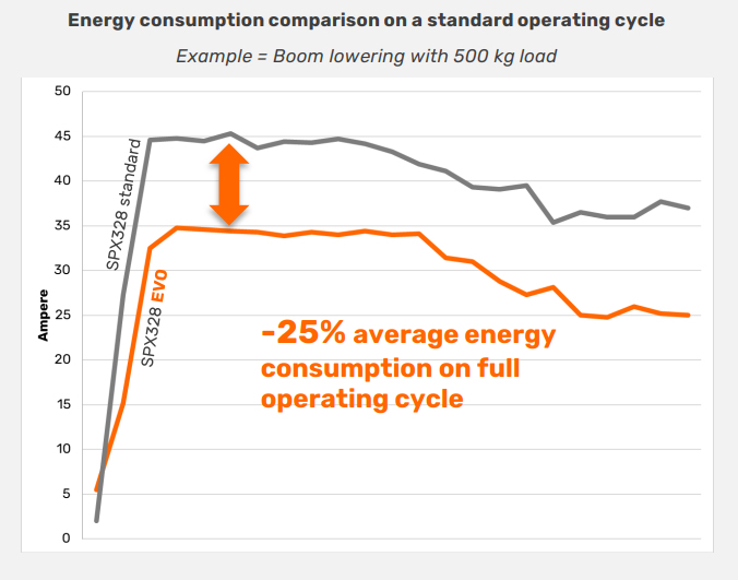 - FASTER CRANE MOVEMENTS: Maximum motor speed increased by +20% with same consumption and faster crane movements.