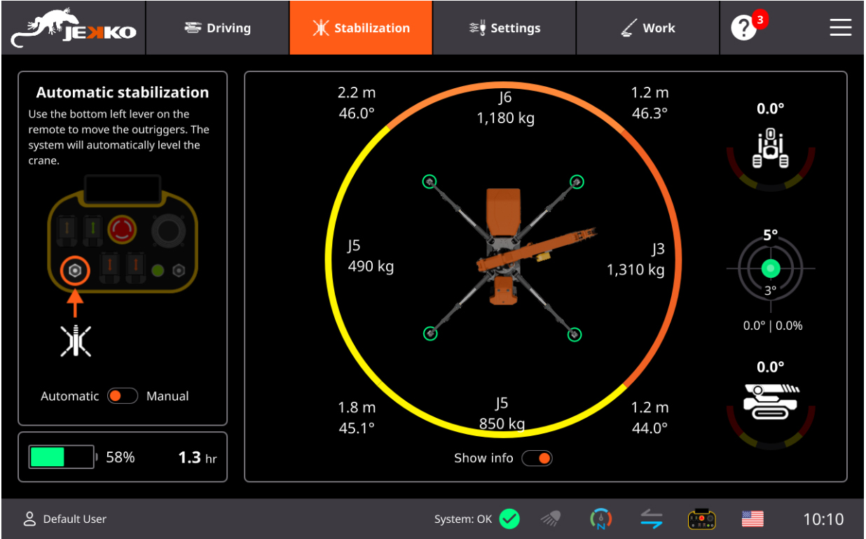 - HIGHER LIFTING CAPACITY in REDUCED STABILITY CONDITIONS and wider stability areas.
